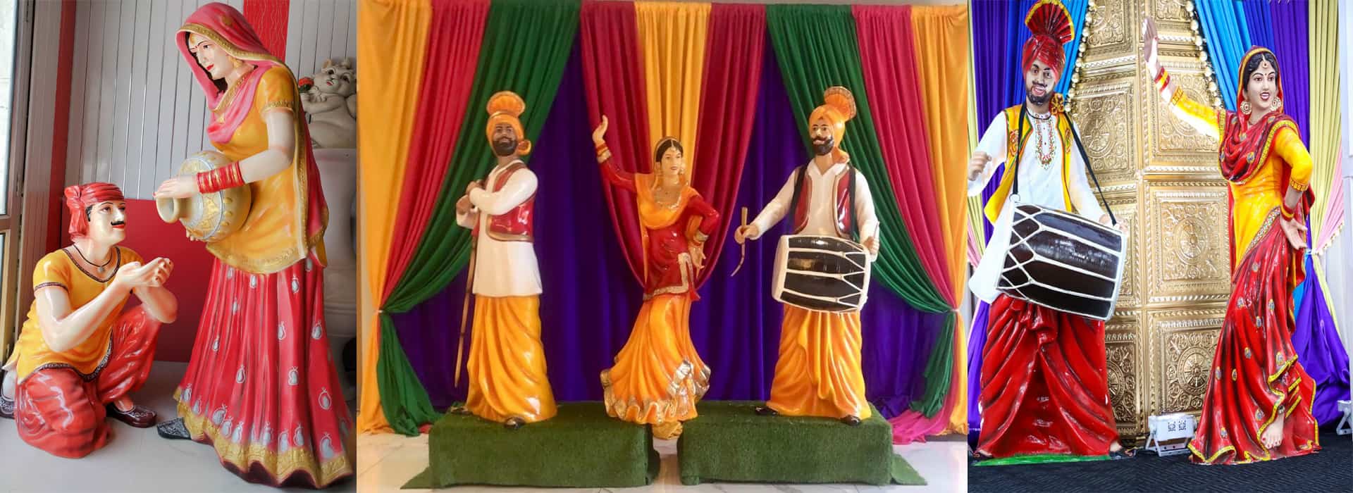Manufacturer, Exporter & Supplier of punjabi cultural statues like bhangra statue , dancing lady, matka lady, dhol guy, heer Ranjha theme statue, khoo lady , khunda guy , etc.